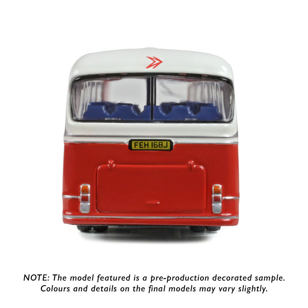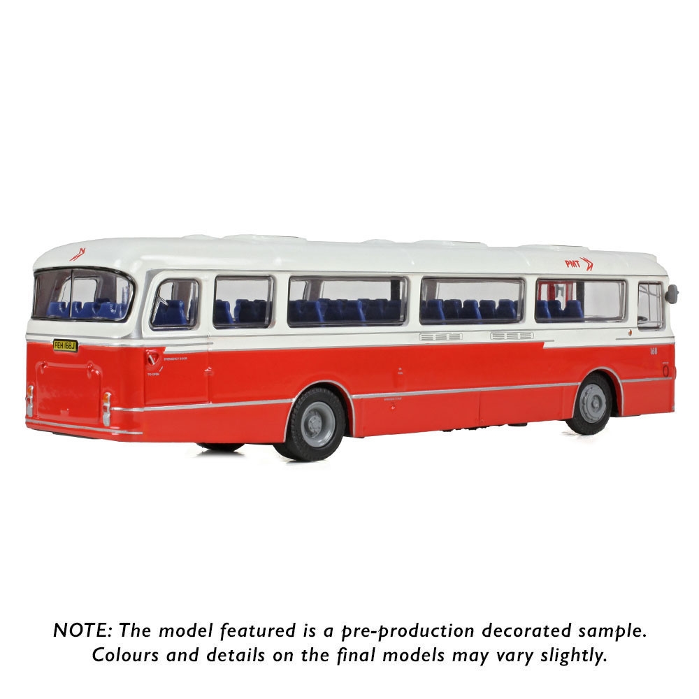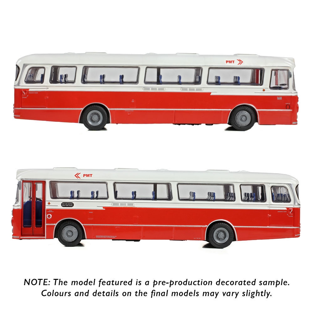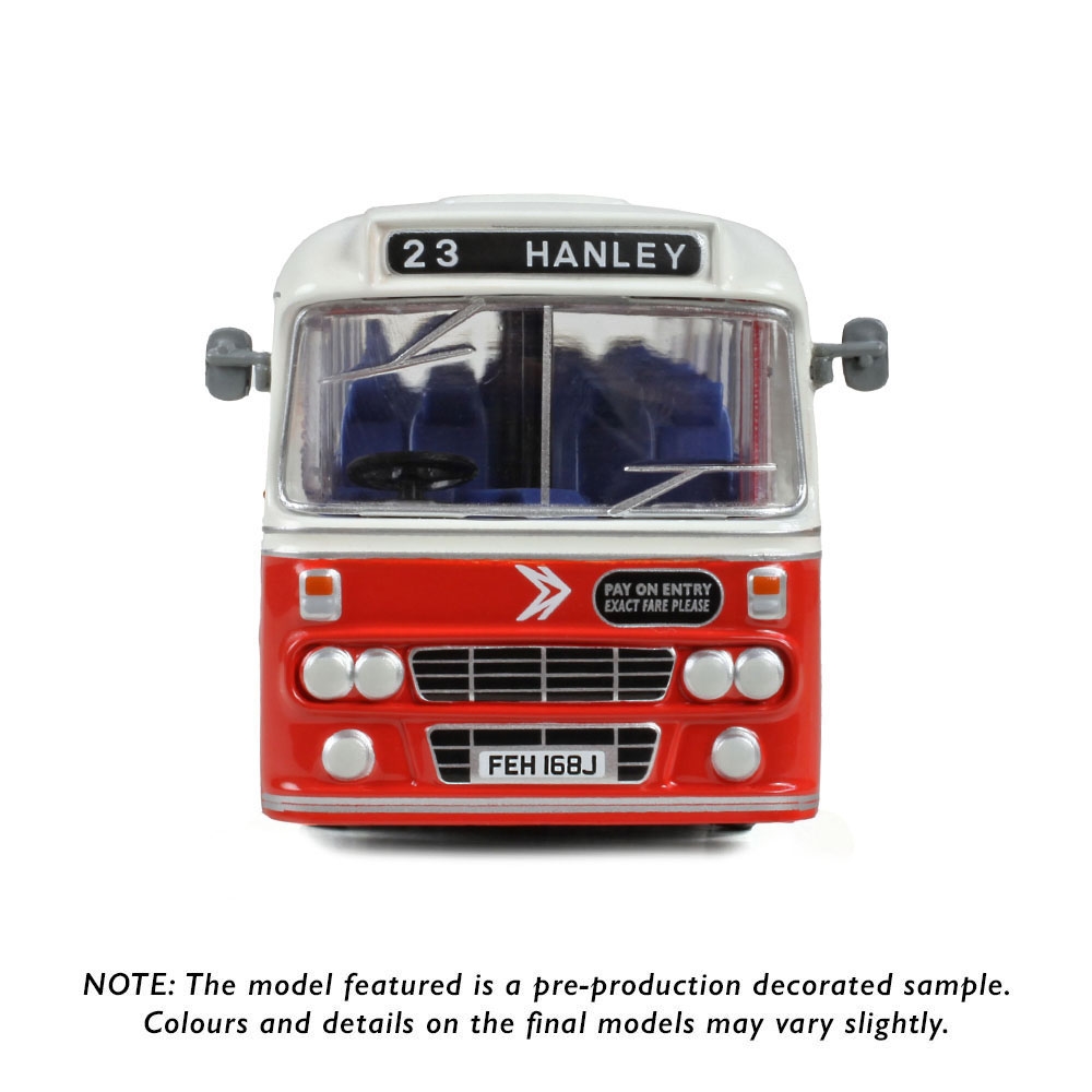 Potteries Motor Traction, or PMT, had some 25 Y-Types on its books, taking delivery of the last six in 1971. One of these was registration FEH168J, a dual purpose 49-seat AY-Type with 2-leaf doors, built on an AEC Reliance chassis. Our model depicts this bus as operating under National Bus Company ownership as PMT No. 168, carrying red and white livery and working Service 23 to Hanley around 1976.