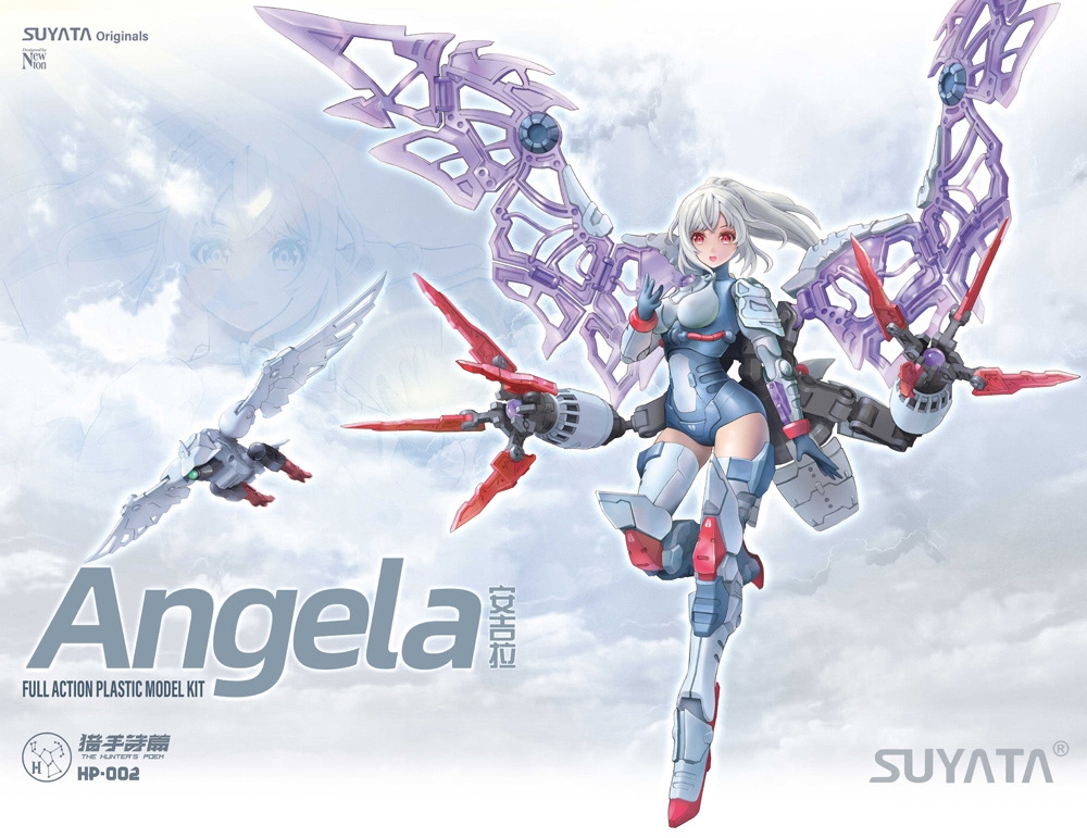 Snap kit with choice of hair colour & chest armour, retractable wings, claw attachments with optional gatling gun. Parts count includes 6 pre-painted faces, 2 pairs of replacement hands, helmet, 2 pairs of large wings, purple wings, pink wings, 2 swords, 2 crossbows, armour pieces, stickers. Girl height 150mm approx. Motorcycle packed separately.