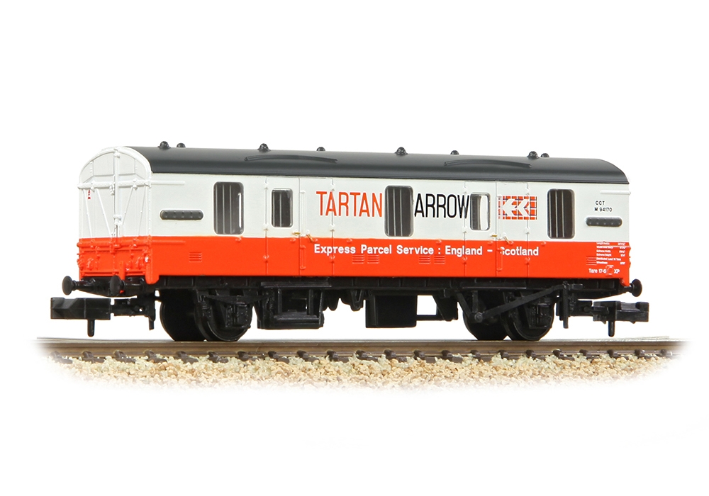 The Tartan Arrow service was established in the mid-1960s and was a dedicated train for the Tartan Arrow parcels company. The train moved parcels between London and Glasgow for onward distribution across Scotland and South East England. The train was usually formed of container wagons, CCTs and former LMS Full Brakes each decorated in the attractive red and white livery with Tartan Arrow branding. The service continued until the early-1970s, as which point the vehicles returned to general parcels use, often still carrying their distinctive livery.