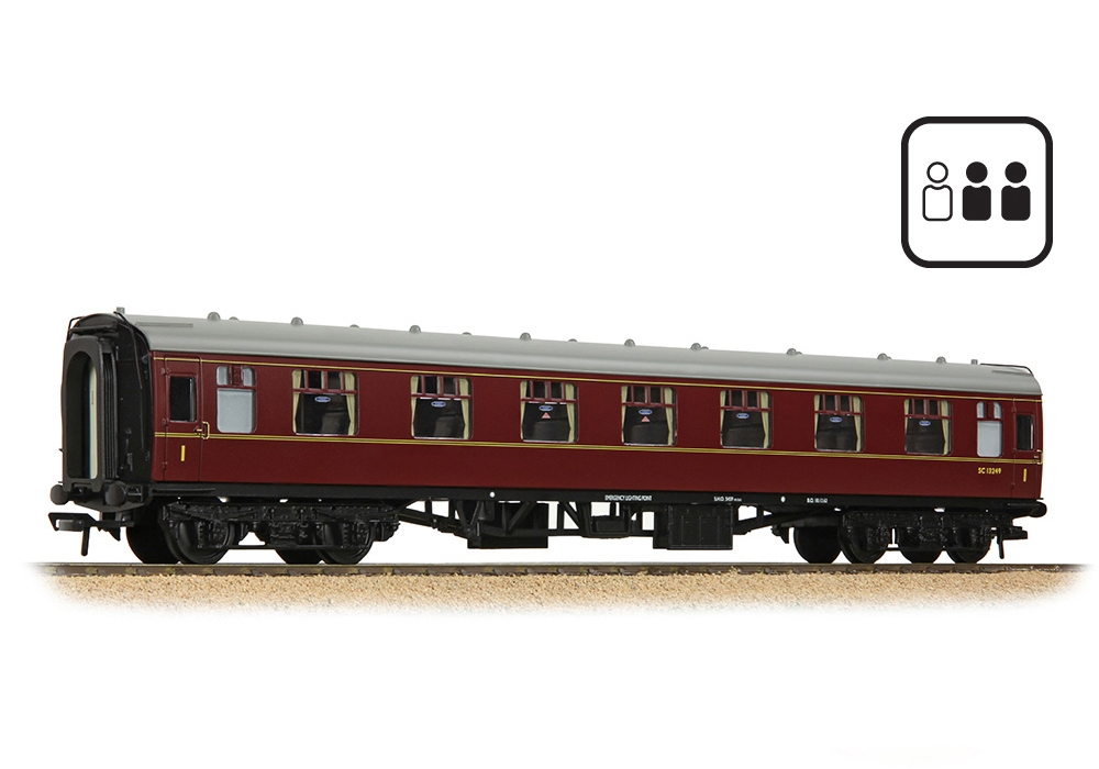 The Bachmann Branchline Mk1 Coaches have long been the model of choice for the discerning enthusiast wishing to add the iconic Mk1 Coach to their collection and today, these models continue to provide OO scale modellers with the finest models, carrying all the hallmarks of this iconic design. The distinctive profile of the Mk1 coach is captured to a tee and on the roof, the finely moulded ventilators are complemented by separately fitted metal handrails and, where appropriate, toilet filler pipes. On the bodysides each door is complete with hinges, handles and even door bumper details, whilst even the sliding window ventilators are discernible. Footboards are present on the solebars below each door whilst the underframe sports a full complement of equipment, with the truss rod frames modelled in all their glory and flanked by battery boxes, vacuum cylinders, dynamo and, where appropriate, other auxiliary equipment.