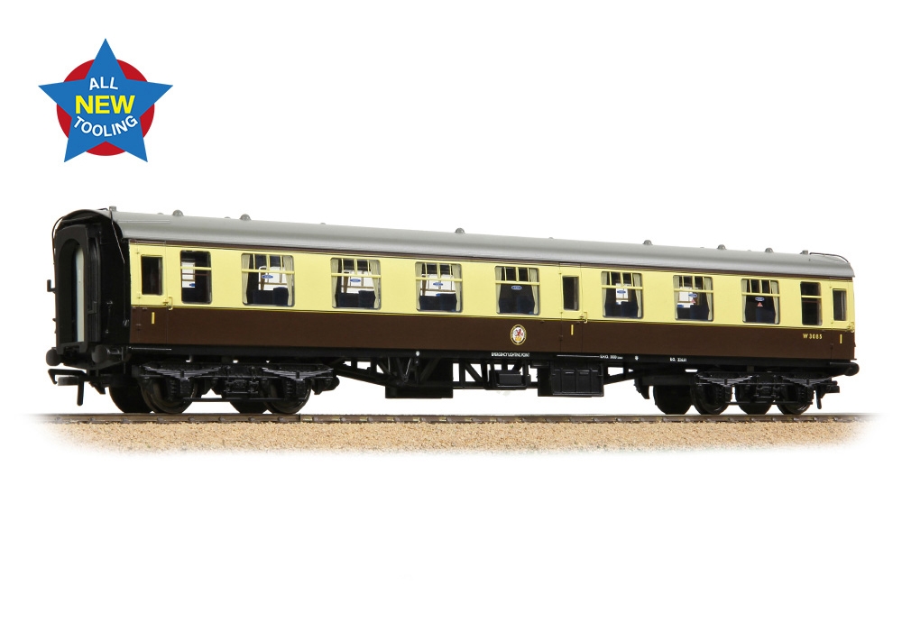 New tooling has been developed to enable models of the First Open (FO) vehicles to be offered as part of the flagship Bachmann Branchline Mk1 Coach range for the first time. These brand new models feature all the hallmarks of the Branchline Mk1, and offer era-appropriate details, such as the presence of end steps. Bogies are now fitted with integrated metal wheel bearings and electrical pickups to aid those wishing to add features to their models which may require power.