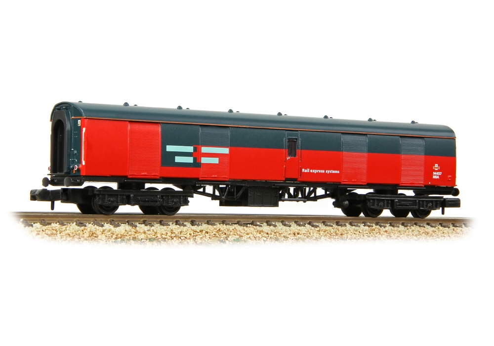 This Graham Farish model is the perfect addition to any Rail Express Systems fleet and employs a detailed bodyshell, with fine mouldings of the roller shutter doors, including the shutter vanes which are engraved individually, and the guard’s door with its adjacent handrails. At each end the corridor connector, handrails, ETH equipment and tail lights are each moulded crisply, whilst below the solebar the truss rod frames are modelled with great finesse, flanked by the battery boxes, dynamo and other auxiliary equipment. Blackened metal wheelsets are fitted to each bogie to ensure free-running, and not only does this model run well but it looks well too, with the vibrant RES livery reproduced using authentic colours, logos and fonts to add the finishing touches.