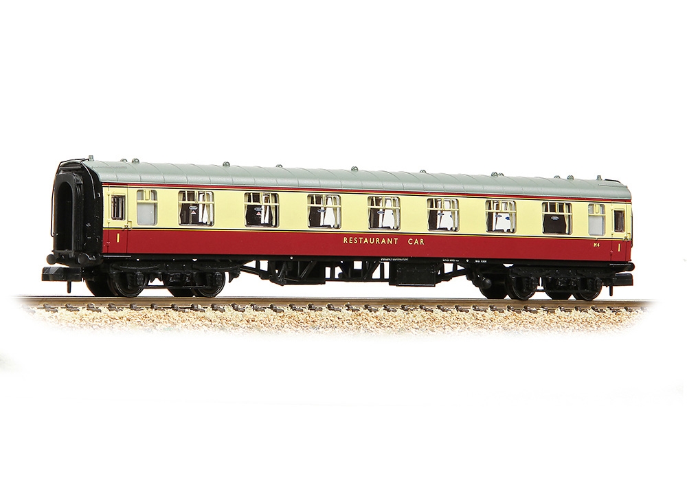 The bogies are fitted with metal wheelsets, whilst the standard N scale coupling is attached via a NEM coupling pocket to the close coupling mechanism that is fitted to the carriage floor, which operates in tandem with the bogie. Inside each model is an interior featuring the prototypical layout of tables and chairs, whilst the icing on the cake is the livery application, using authentic colours, logos and fonts to give every model an exquisite appearance.