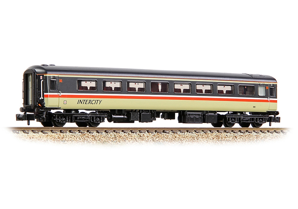 The B4 bogies are fitted with metal wheelsets, whilst the standard N scale coupling attach via a NEM coupling pocket providing interchangeability with other coupling systems. Inside each model is an interior featuring the prototypical layout of tables and chairs, and brake vehicles even contain the luggage compartment caging, whilst the icing on the cake is the livery application, using authentic colours, logos and fonts to give every model an exquisite appearance.