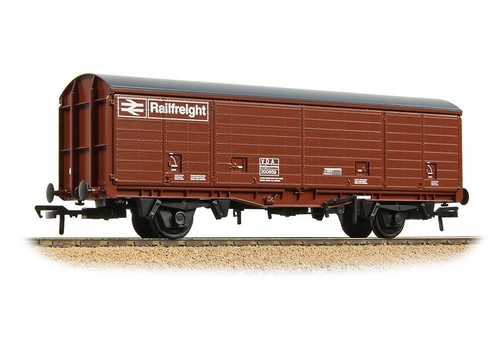 The VDA van was a development of British Rail’s Cov AB air-braked van which was first introduced in the late 1960s, with the VDAs entering traffic from 1975. Sharing the same 20ft 9in wheelbase as the original Cov ABs, the VDAs not only had sliding doors to allow the sides to be fully opened for loading/unloading but these doors could also be opened individually as cupboard doors to allow quicker access to just one internal area. The vans entered traffic in Speedlink services and were used to transport general merchandise, often being marshalled into mixed goods trains as opposed to being operated as uniform rakes and could carry all manner of general merchandise. By the 1980s their traffic was reducing and so many VDAs were rebuilt to suit new traffic, most notably as OTA timber carrying wagons or low sided ballast/spoil wagons where were often coded as ZCA ‘Sea Urchins’.