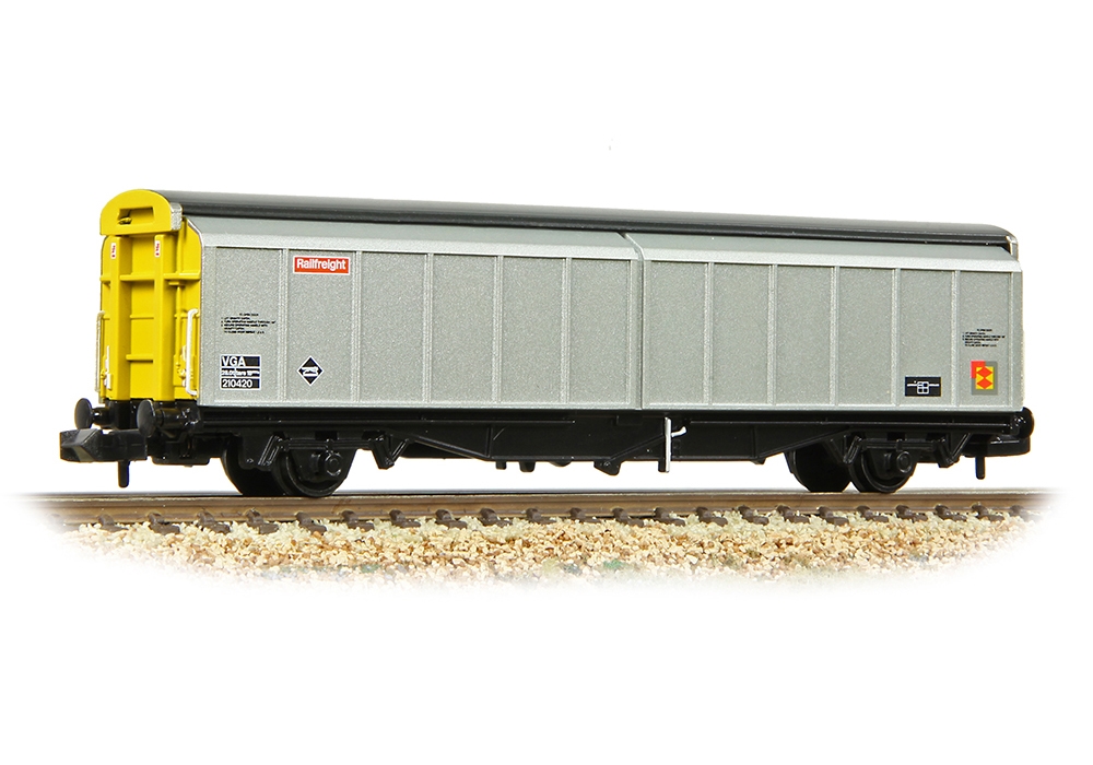 The VGA vans were built by British Rail between 1982 and 1983 for use on Speedlink services. Not only were they longer than the VAA-VDA air-braked vans that went before them, they also had taller openings as the sides, which were formed from a pair of sliding doors, extended above the roof line leaving just a narrow fixed roof section along the centre line of the van. Entering traffic on Speedlink services and finished in bare aluminium with red ends, the introduction of the new Railfreight identity in 1987 saw a number of VGAs gain yellow ends and Railfreight Distribution branding. Unlike many of their predecessors, the VGAs continued to find use after Speedlink services ceased in 1993 and soon many were formed into block trains carrying all manner of merchandise from explosives for the Ministry of Defence to petfood from Scotland. EWS became the main operator of the vans following Privatisation and a good number remain in service today.