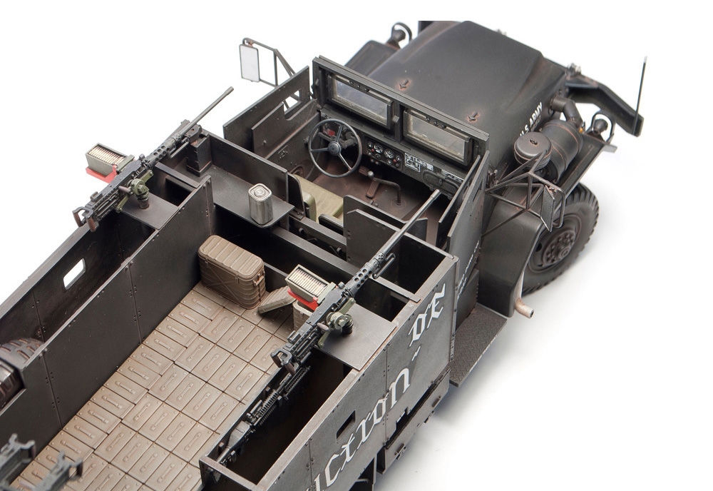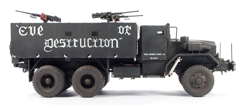 The AFV Club kit depicts 'Eve of Destruction' (after the protest song), the only surviving gun truck of the war in Vietnam. It was repatriated to the United States in 1971 and is preserved at the Army Transportation Museum, Fort Eustis, Virginia 23604.