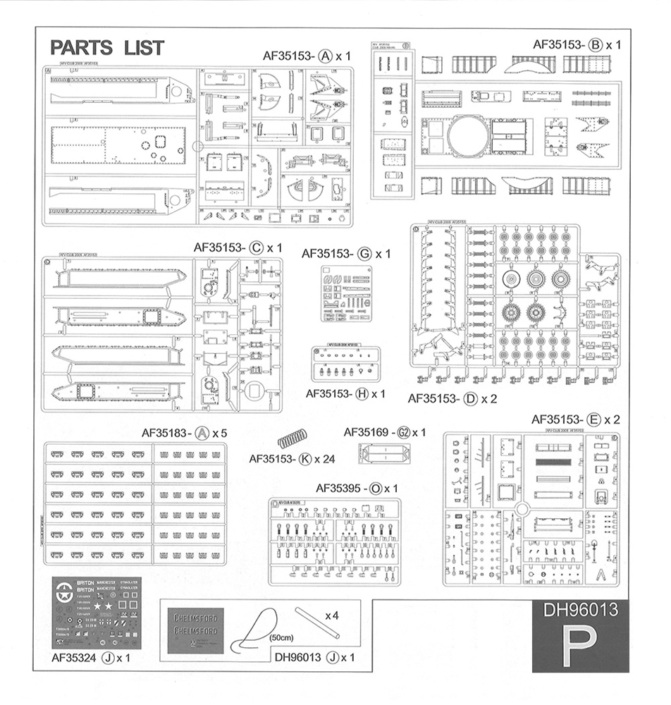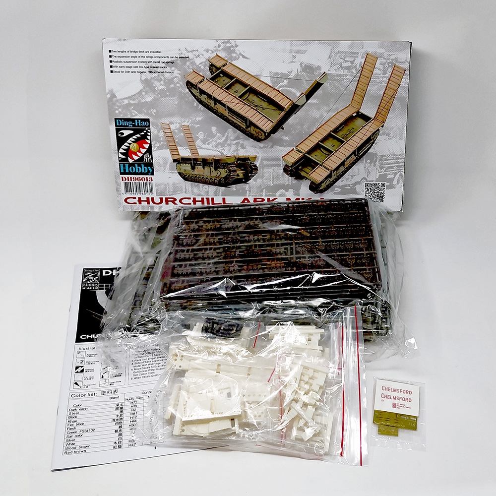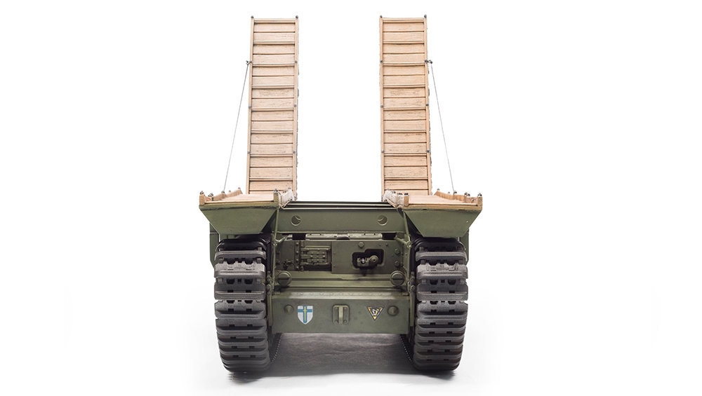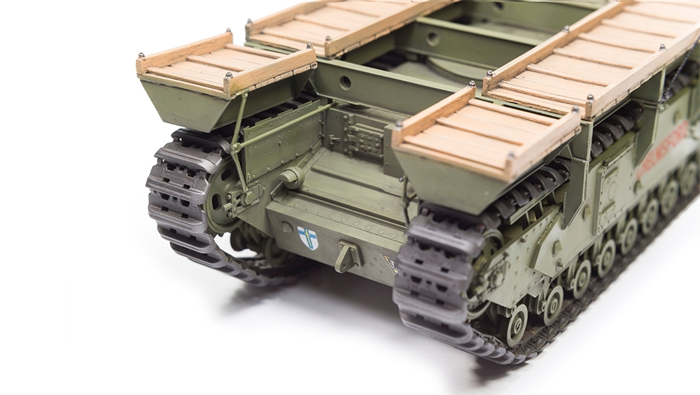 Features: Plastic parts (450g) – Turretless AFV Club Churchill kit, metal coil spring suspension, photo-etch. Resin parts (150g) – 2 lengths of bridge deck, early-stage cast link crawler tracks. Markings for 34th Tank Brigade, 79th Armoured Division "Chelmsford".