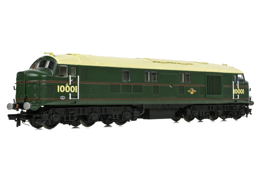 Built by the LMS and so becoming part of the Midland Region’s fleet under BR, after five years in traffic the ‘Twins’ were sent to the Southern Region (SR) between 1953 and 1955 for trails alongside the SR’s own prototype diesels. To work on the SR, additional headcode lights and brackets were fitted to suit the Southern 6 position headcode system and these remained a feature of both locomotives thereafter, as displayed on this model of No. 10001 which is depicted in BR Green livery and with the late crests that were applied by BR from 1956. By this time the pair had returned to the Midland Region and were employed on duties across the region.