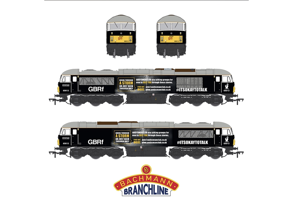 Bachmann Europe Plc has teamed up with GB Railfreight (GBRf) to produce a OO Scale model of Class 69 Diesel Locomotive No. 69013, which will be sold to help raise funds for Andy’s Man Club, the mental health charity that encourages men to talk and aims to prevent male suicide.