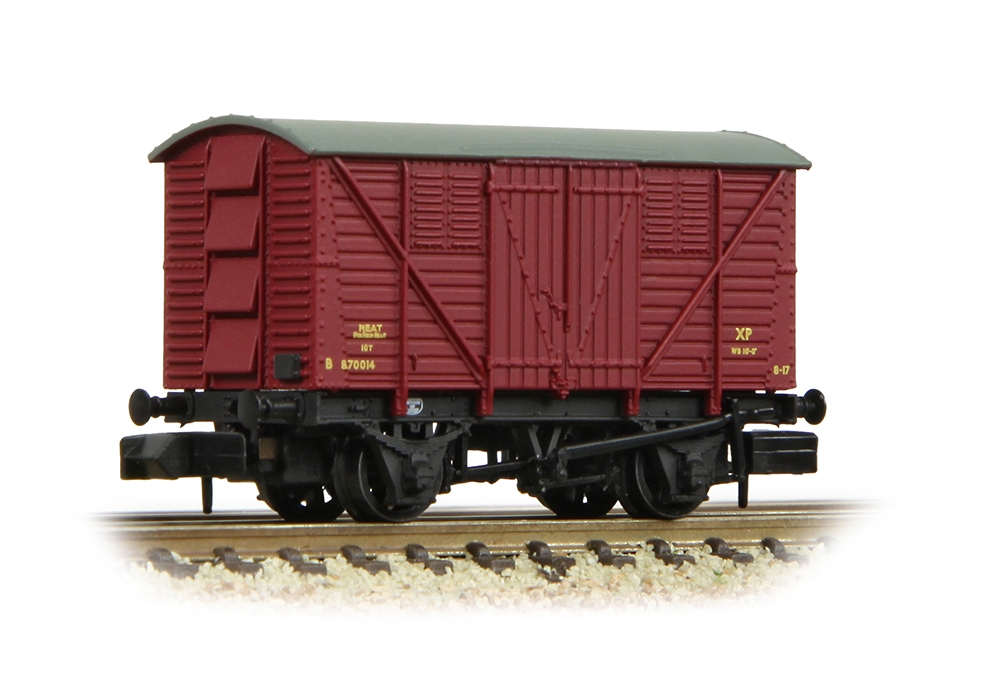 British Railways (BR) inherited a wide range of rolling stock upon Nationalisation in 1948, much of which was aging or in need of modern replacement and so a programme to build new vehicles soon commenced. These new vehicles were built to a variety of standardised designs, for covered vans most of the new designs centred around a 10ft wheelbase chassis with a metal and wood body on top. Alongside general merchandise vans, several specialist types were built including the 10 Ton Meat Van which employed a metal chassis whilst the van was constructed from a pair of corrugated metal ends, in the centre of which was a row of four ventilator. The metal body frame was panelled with wooden planks, and further ventilators were fitted either side of the double doors. As the name suggests, the vans were built to transport meat but in later years also found use moving general merchandise.