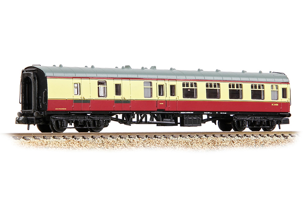 Crowned as Model of the Year when they were first introduced, the Graham Farish Mk1 Coaches continue to provide N scale modellers with a masterpiece in miniature, carrying all the hallmarks of this iconic design. The distinctive profile of the Mk1 coach is captured to a tee and on the roof, the finely moulded ventilators are complemented by separately fitted metal handrails and, where appropriate, toilet filler pipes. On the bodysides each door is complete with hinges, handles and even door bumper details, whilst even the sliding window ventilators are discernible. Footboards are present on the solebars below each door whilst the underframe sports a full complement of equipment, with the truss rod frames modelled in all their glory and flanked by battery boxes, vacuum cylinders, dynamo and, where appropriate, other auxiliary equipment.