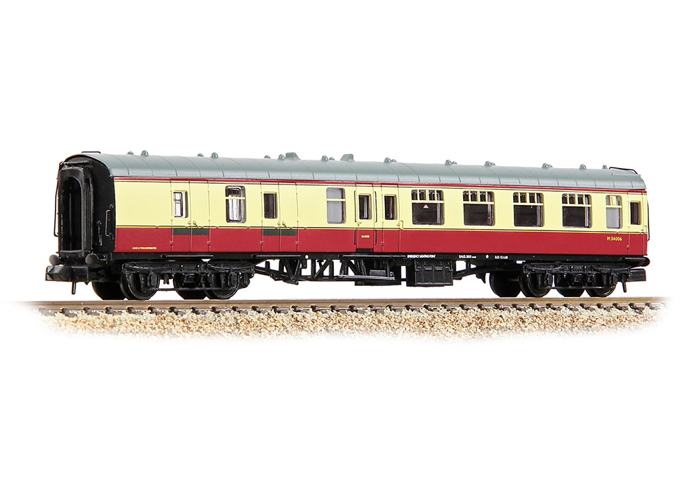 Crowned as Model of the Year when they were first introduced, the Graham Farish Mk1 Coaches continue to provide N scale modellers with a masterpiece in miniature, carrying all the hallmarks of this iconic design. The distinctive profile of the Mk1 coach is captured to a tee and on the roof, the finely moulded ventilators are complemented by separately fitted metal handrails and, where appropriate, toilet filler pipes. On the bodysides each door is complete with hinges, handles and even door bumper details, whilst even the sliding window ventilators are discernible. Footboards are present on the solebars below each door whilst the underframe sports a full complement of equipment, with the truss rod frames modelled in all their glory and flanked by battery boxes, vacuum cylinders, dynamo and, where appropriate, other auxiliary equipment.