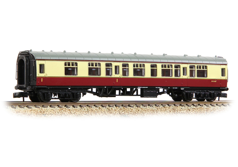 Crowned as Model of the Year when they were first introduced, the Graham Farish Mk1 Coaches continue to provide N scale modellers with a masterpiece in miniature, carrying all the hallmarks of this iconic design. The distinctive profile of the Mk1 coach is captured to a tee and on the roof, the finely moulded ventilators are complemented by separately fitted metal handrails and, where appropriate, toilet filler pipes. On the bodysides each door is complete with hinges, handles and even door bumper details, whilst even the sliding window ventilators are discernible. Footboards are present on the solebars below each door whilst the underframe sports a full complement of equipment, with the truss rod frames modelled in all their glory and flanked by battery boxes, vacuum cylinders, dynamo and, where appropriate, other auxiliary equipment.