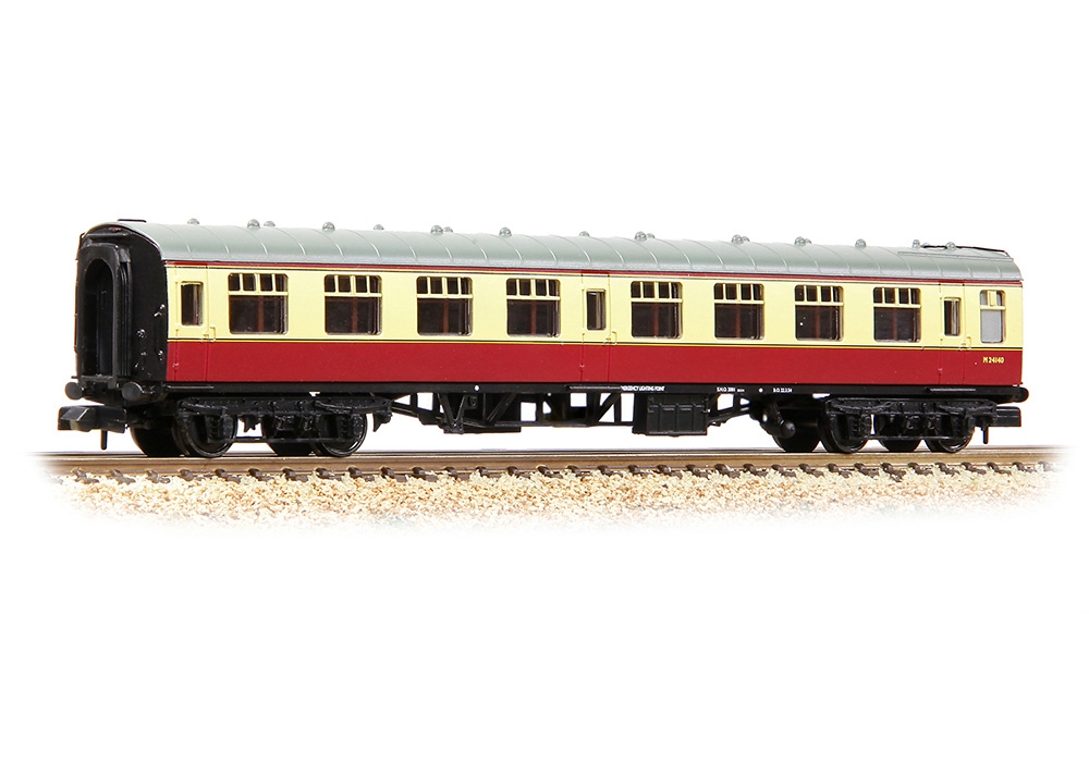 Crowned as Model of the Year when they were first introduced, the Graham Farish Mk1 Coaches continue to provide N scale modellers with a masterpiece in miniature, carrying all the hallmarks of this iconic design. The distinctive profile of the Mk1 coach is captured to a tee and on the roof, the finely moulded ventilators are complemented by separately fitted metal handrails and, where appropriate, toilet filler pipes. On the bodysides each door is complete with hinges, handles and even door bumper details, whilst even the sliding window ventilators are discernible. Footboards are present on the solebars below each door whilst the underframe sports a full complement of equipment, with the truss rod frames modelled in all their glory and flanked by battery boxes, vacuum cylinders, dynamo and, where appropriate, other auxiliary equipment.