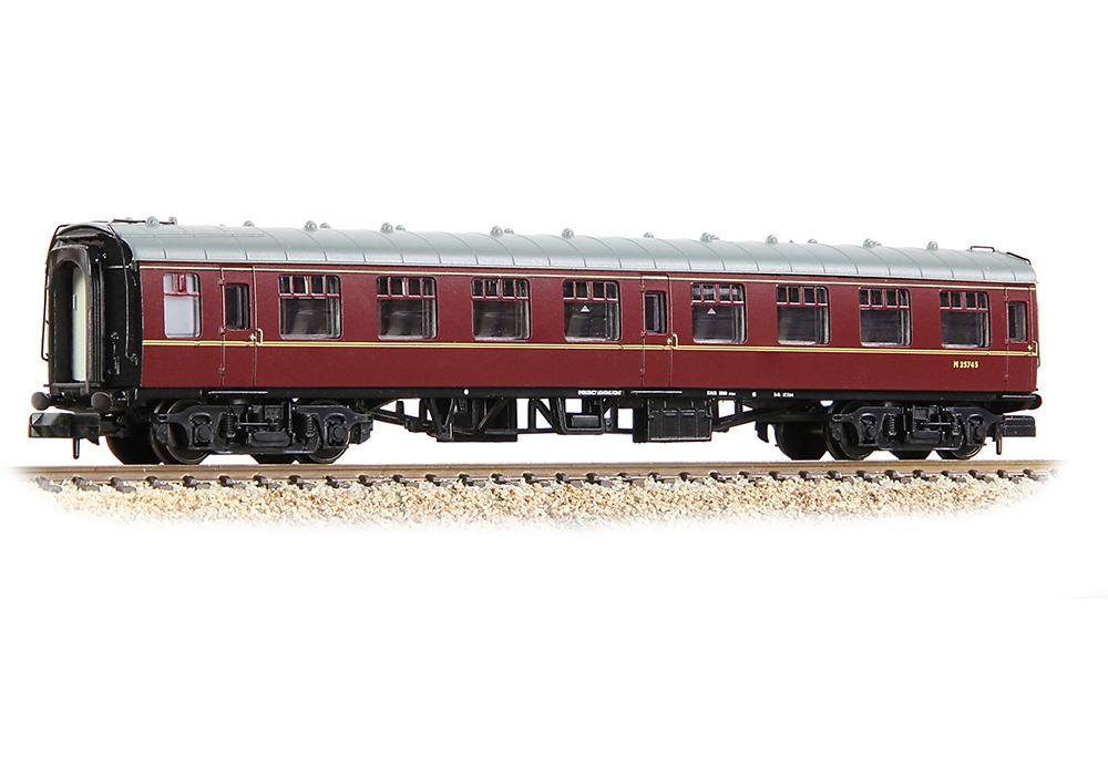 Crowned as Model of the Year when they were first introduced, the Graham Farish Mk1 Coaches continue to provide N scale modellers with a masterpiece in miniature, carrying all the hallmarks of this iconic design. The distinctive profile of the Mk1 coach is captured to a tee and on the roof, the finely moulded ventilators are complemented by separately fitted metal handrails and, where appropriate, toilet filler pipes. On the bodysides each door is complete with hinges, handles and even door bumper details, whilst even the sliding window ventilators are discernible. Footboards are present on the solebars below each door whilst the underframe sports a full complement of equipment, with the truss rod frames modelled in all their glory and flanked by battery boxes, vacuum cylinders, dynamo and, where appropriate, other auxiliary equipment.
