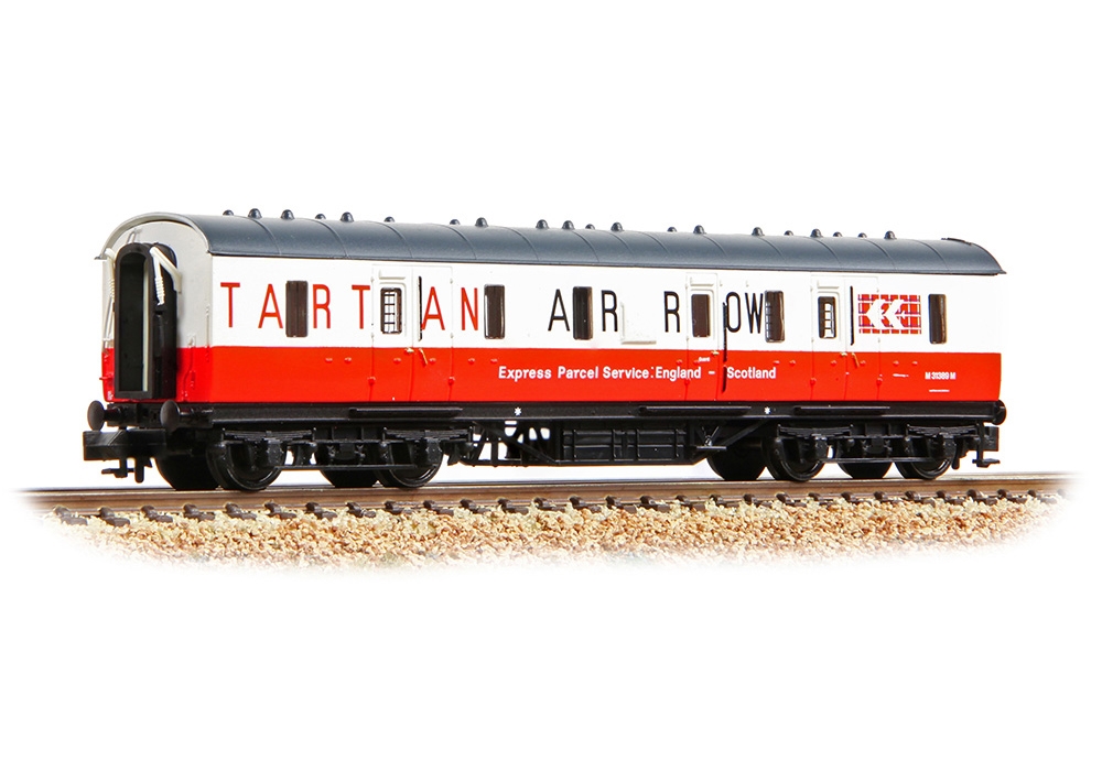 The Tartan Arrow service was established in the mid-1960s and was a dedicated train for the Tartan Arrow parcels company. The train moved parcels between London and Glasgow for onward distribution across Scotland and South East England. The train was usually formed of container wagons, CCTs and former LMS Full Brakes each decorated in the attractive red and white livery with Tartan Arrow branding. The service continued until the early-1970s, as which point the vehicles returned to general parcels use, often still carrying their distinctive livery.