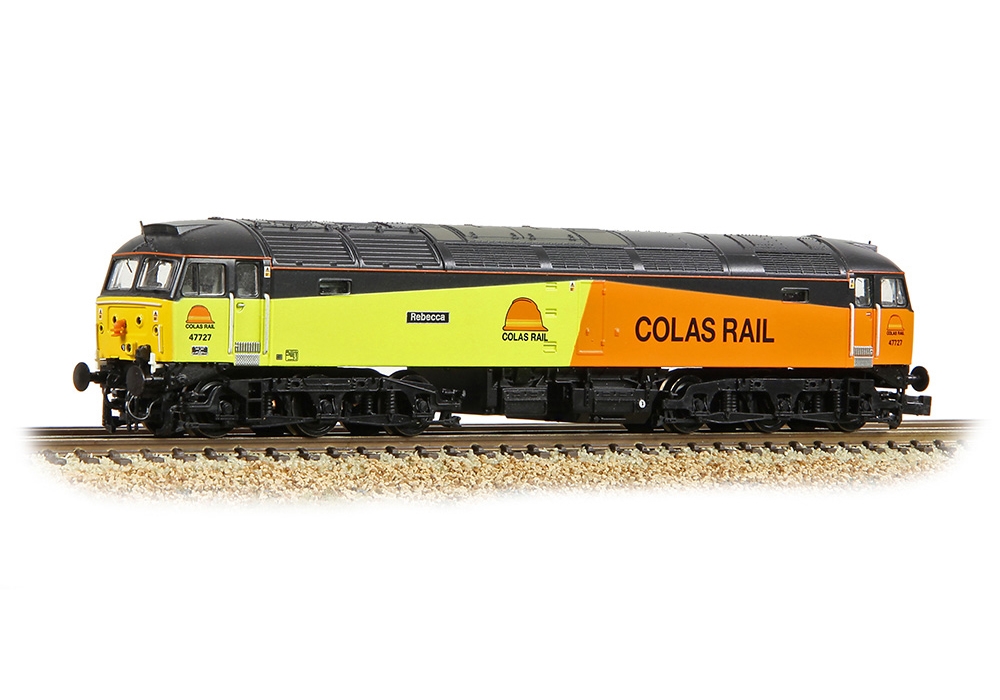 The popular BR Class 47 Diesel Locomotive returns to the Graham Farish range with models of the ‘Crewe-Cut’ locomotives available for the first time thanks to the development of new tooling that further expands the range of Class 47s that can be modelled in N scale. Many Class 47s had the cowling around their bufferbeams removed in later life, changing the appearance of the lower front end and with this work usually being undertaken at Crewe Works, the resultant locomotives were commonly termed ‘Crewe-Cut’ machines. No. 47727 is one such machine, originally built as D1629, in 1981 it was fitted with Electric Train Heating (ETH) and became 47569 and later still was renumbered to 47727 in 1994 following the fitting of extended range fuel tanks. Whilst in Colas Rail ownership, in 2007 the locomotive was named ‘Rebecca’; today this Class 47 is operated by GBRf and has subsequently been re-named as ‘Edinburgh Castle/Caisteal Dhun Eideann’.