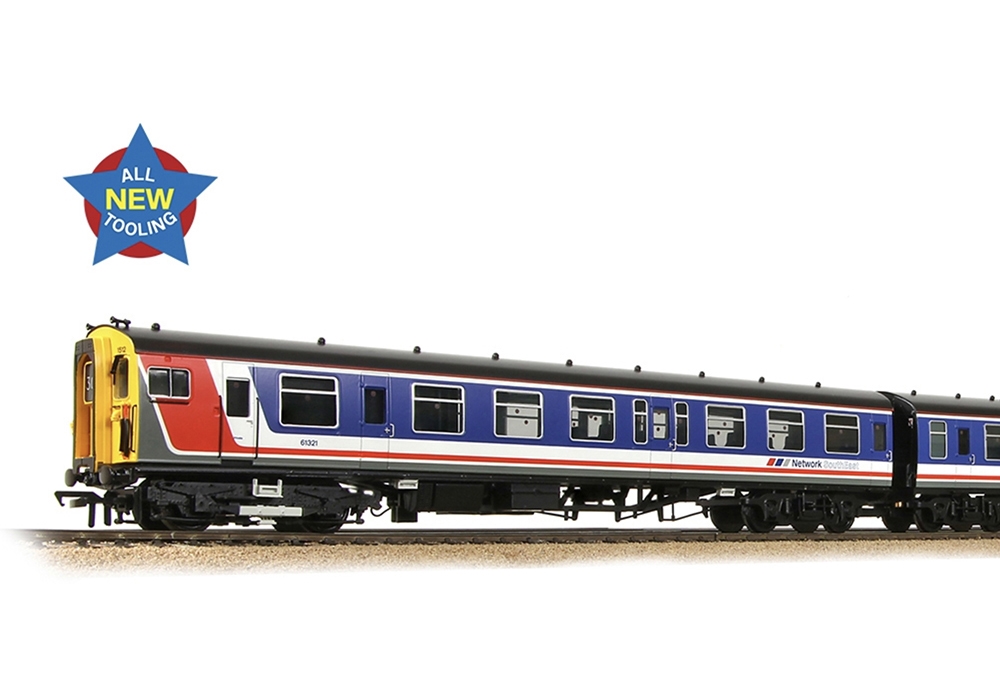 The Bachmann Branchline 4-CEP Electric Multiple Unit (EMU) broke new ground when it was first released and now we’ve created new bodyshells for this award winning model to bring you these new models depicting the refurbished units. With the fitting of hopper ventilator windows and the relocation of the two guard’s compartments from the driving vehicles to a single location in the trailer vehicle, the changes made at refurbishment were drastic and we’ve captured them all in this new Branchline model which depicts 4-CEP No. 1512 in BR Network SouthEast livery.
