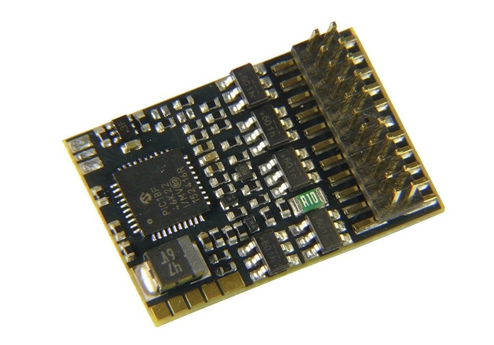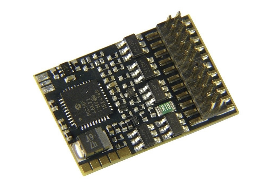 A Plux22 (NEM658) DCC Decoder suitable for models fitted with a Plux22 DCC decoder socket.