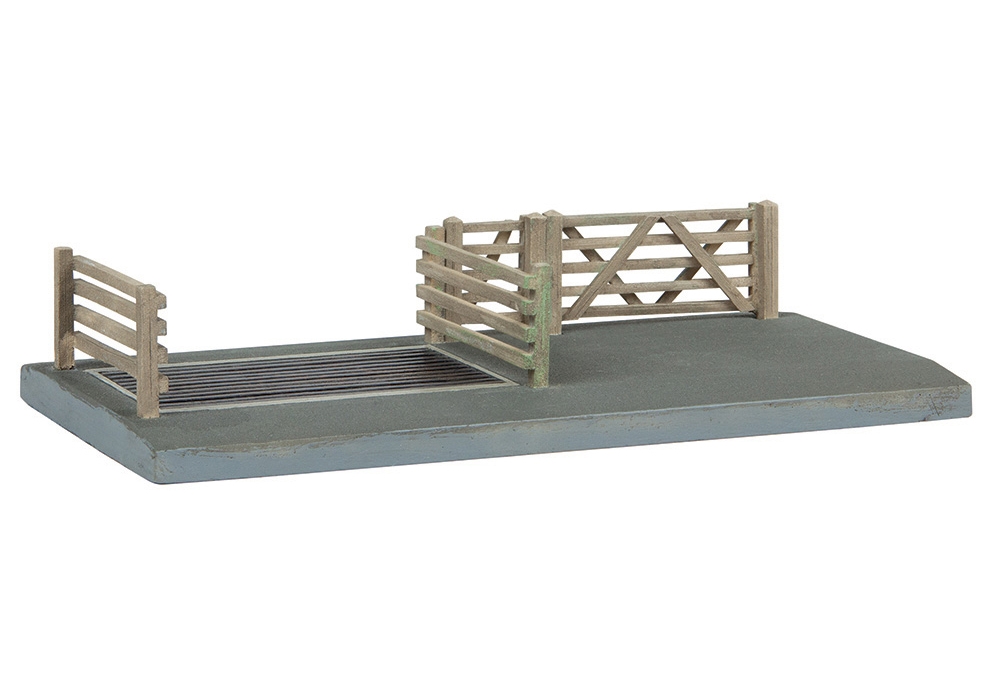 Used to prevent livestock such as sheep, cows and horses from getting on to a road or railway line, the Cattle grid is an essential part of any rural setting. Fitted with a five-bar gate, fencing and a resin base plate making it easy to place on to your layout straight out of the box.