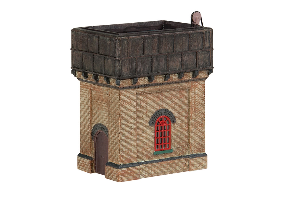 Water towers were a vital part of railway infrastructure during the days of steam locomotives, often being positioned near yards, depots, stations and other facilities. This Brick Base Water Tower with red window frames from Scenecraft would fit perfectly on any layout depicting areas where steam locomotives are being used or maintained.