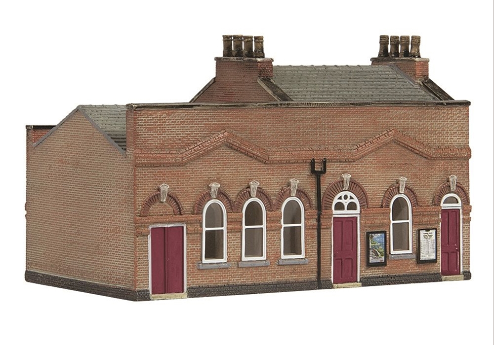 A Ticket Office is a requirement for any station to allow passengers to purchase tickets and make enquiries about journeys that they are planning to undertake. Based on March Station on the Ely–Peterborough line through Cambridgeshire, this Scenecraft model depicts a brick-built station Ticket Office with red highlights that can be combined with our March Station Facilities and Stores (42-0067R), March Station Waiting Room (42-0065R) and March Station Canopy (42-0068R) to depict a large station on any N scale layout.