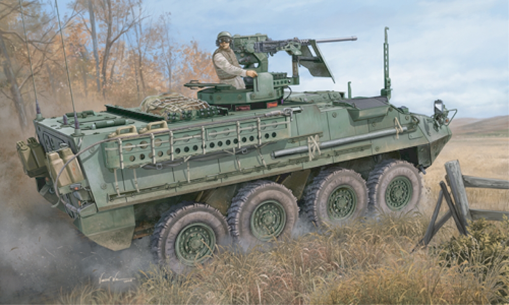 • L: 215mm, W: 84mm • Total Parts: 440+ • Stryker Upgrade & Conversion Set available separately PKTM06603 • 1:35 scale plastic model kit from Trumpeter, requires paint and glue