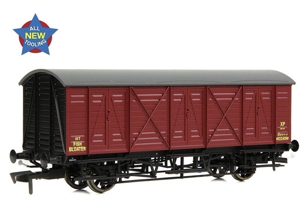 The GWR ‘Bloater’ vans were built for fish traffic from 1916 onwards, to replace an ageing fleet of older designs used to transport fish. Due to the nature of the cargo, the vans were reserved solely for fish traffic and worked mainly from the major fishing ports in Cornwall and Pembrokeshire. Classed as Non-Passenger-Carrying Coaching Stock (NPCCS), the vans were through-piped for steam heating and were rated to run at express speeds with passenger trains. Three variants of the ‘Bloater’ are covered by these all-new EFE Rail models – the Diagram S8, S9 and S10. Within these diagrams could be found vans fitted with vacuum brakes and those fitted with both vacuum and Westinghouse air brakes – the latter were coded ‘Bloater A’, but by the early-1930s these had seen their air brakes removed and were recoded to ‘Bloater’.