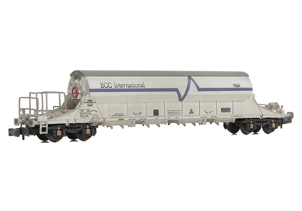 Following the launch of the PBA ‘Clay Tiger’ Wagons in N scale for the first time, further examples join the EFE Rail range, and this model is finished in weathered English China Clays International White livery. Accurately detailed to reflect the prototype, this example depicts a wagon as built, with original solebars and without train-ferry tie-down points.