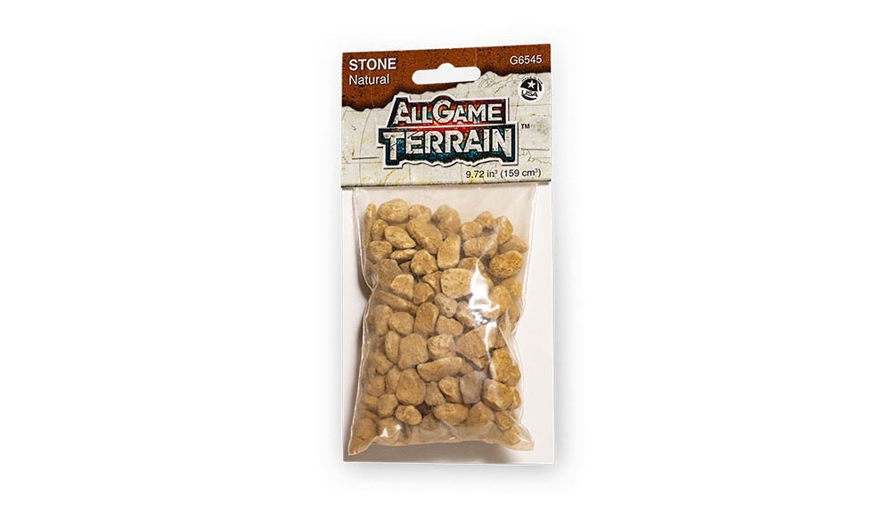 Natural Stone represents medium to large sized rocks on your miniature base or gaming mat while showing scale for your miniatures. Natural Stone creates an earthy, natural look for shorelines or along pathways. Blend multiple colors and sizes of Rocks together to create variation on your terrain feature. Glue Natural Stone down easily with Game Tac ™.