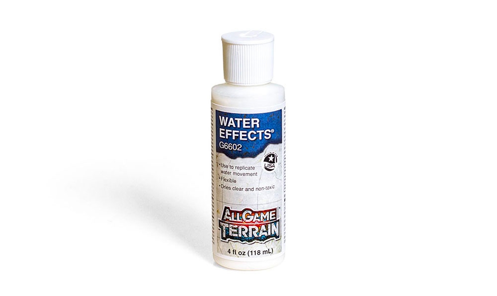 Use Water Effects® to create movement of water or apply on your miniature. This product is moldable, holds its shape, dries clear and remains flexible. It is also great for creating winter effects like icicles and thick layers of snow on your terrain feature, miniature base or gaming mat. Water Effects is water soluble and non-toxic.