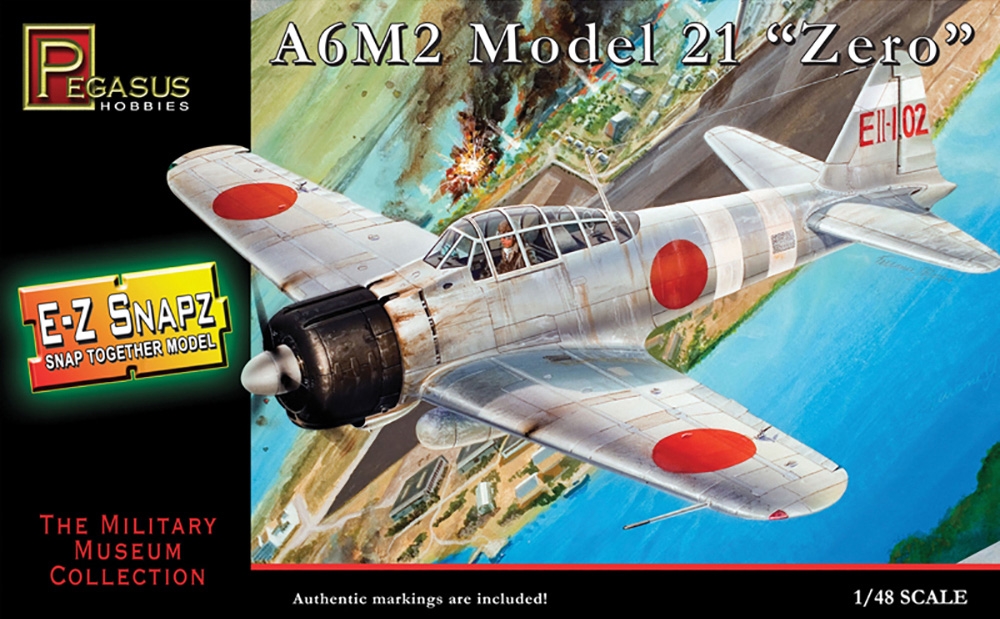 • A6M2 Model 21 Zero• 1:48 scale unpainted snap-together plastic model kit from Pegasus