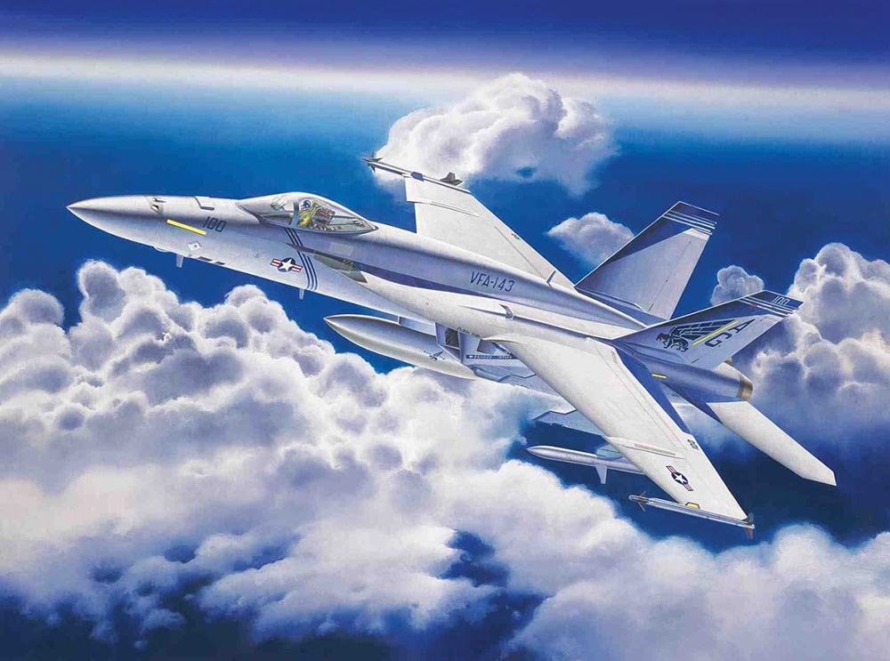 • Markings for F/A-18E, BuNo 166776, VFA-31 Tomcatters, AJ/100, CAG aircraft, F/A-18E, BuNo 166608, VFA-143 Pukin Dogs, AG/100, CAG aircraft, USS Dwight D. Eisenhower and F/A-18E, BuNo 165860, VFA-27 Royal Maces, NF/200, CAG aircraft, USS Kitty Hawk