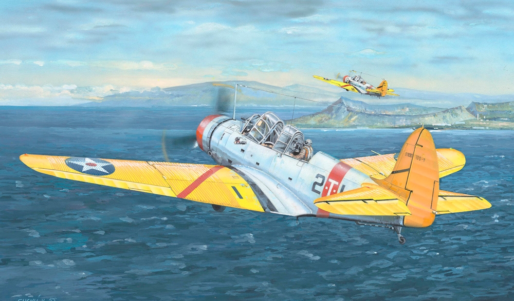 The first American carrier-based torpedo bomber and the first low-wing all-metal monoplane in US military service, infamously decimated at the Battle of Midway in June 1942 when 36 of an attack force of 41 aircraft from HORNET, ENTERPRISE and YORKTOWN were destroyed by Japanese Zero fighters.