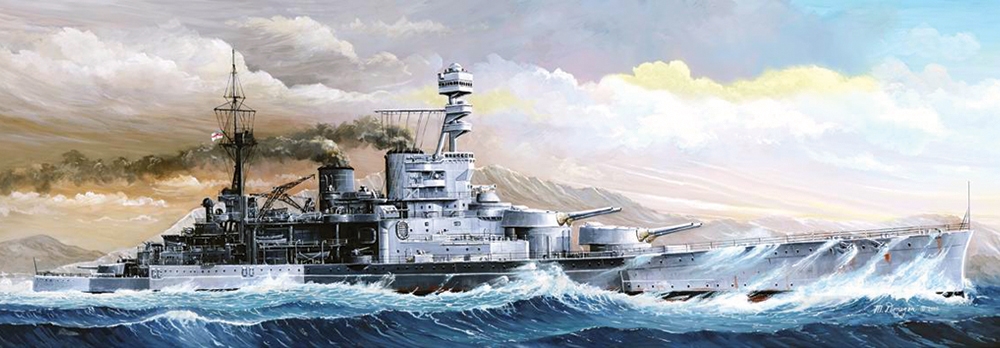 • Renown Class Battlecruiser • L: 692mm, W: 89.6mm, Waterline plate • 1:350 scale plastic model kit from Trumpeter, requires paint and glue