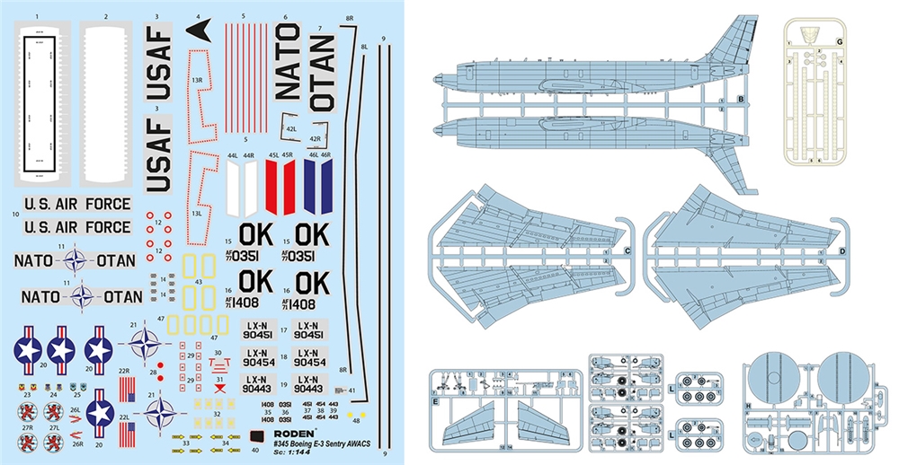 9 sprues including clear parts. Choice of markings for USAF and NATO aircraft.