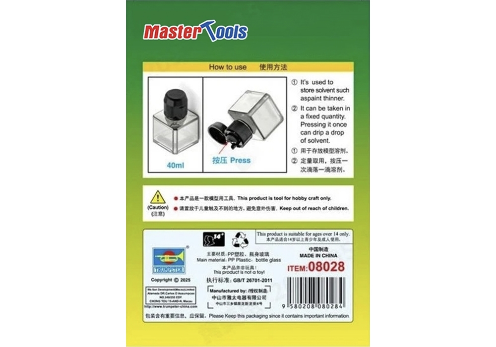 Box code: 08028.Box description: 40ml Square Bottle for model solvent.