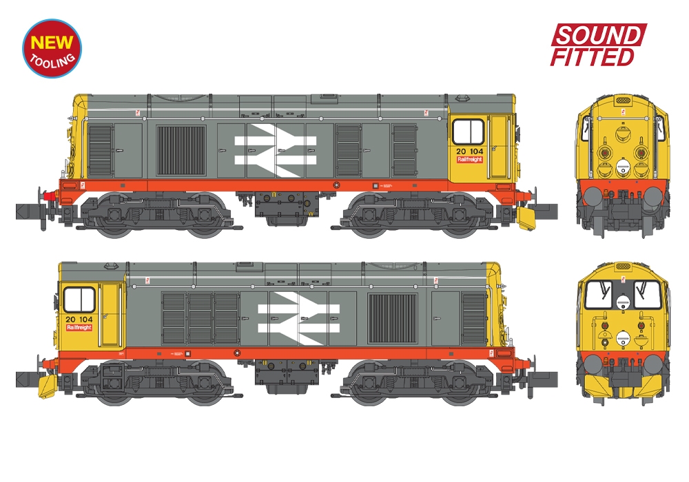 New tooling has been added to the Graham Farish Class 20 suite allowing models of the locomotives that were built to work in Scotland to be offered for the first time. More than half of the initial 128 locomotives were ordered for the Scottish Region, and these were built with larger cab side windows and bodyside recesses below, allowing tablet catchers to be fitted which could be accessed by crew from within the cab. The recesses were later plated over, but the large cab side windows remained, and it is in this condition that we present this model of No. 20104.