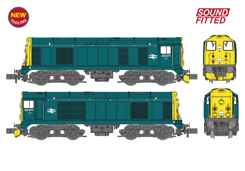 New tooling has been added to the Graham Farish Class 20 suite allowing models of the locomotives that were built to work in Scotland to be offered for the first time. More than half of the initial 128 locomotives were ordered for the Scottish Region, and these were built with larger cab side windows and bodyside recesses below, allowing tablet catchers to be fitted which could be accessed by crew from within the cab, and these features are incorporated into this model of No. 20077, albeit without the presence of the tablet catcher gear and so resembling the real locomotive.