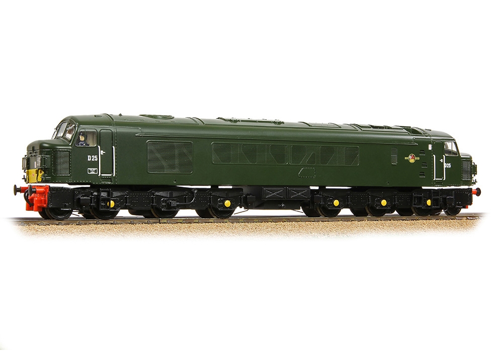 The popular Class 45 Diesel Locomotive returns to the Bachmann Branchline range with this OO scale model depicting No. D25 in plain BR Green livery with Small Yellow Panels. Together with the Class 44s and 46s the classes were commonly known as the ‘Peaks’, because the Class 44s had been named after mountains in England and Wales, however many of the Class 45s went unnamed including No. D25.