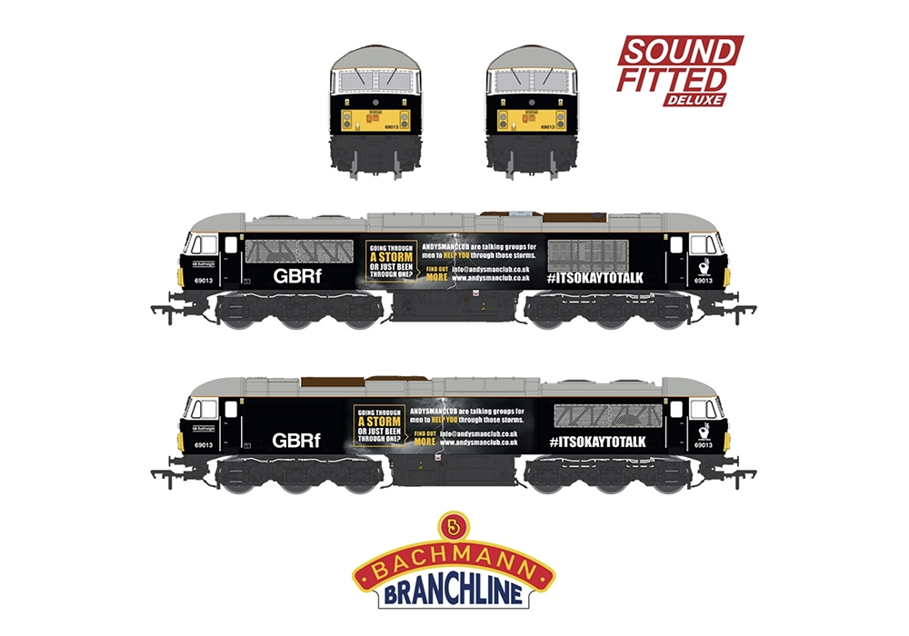 Bachmann Europe Plc has teamed up with GB Railfreight (GBRf) to produce a OO Scale model of Class 69 Diesel Locomotive No. 69013, which will be sold to help raise funds for Andy’s Man Club, the mental health charity that encourages men to talk and aims to prevent male suicide.