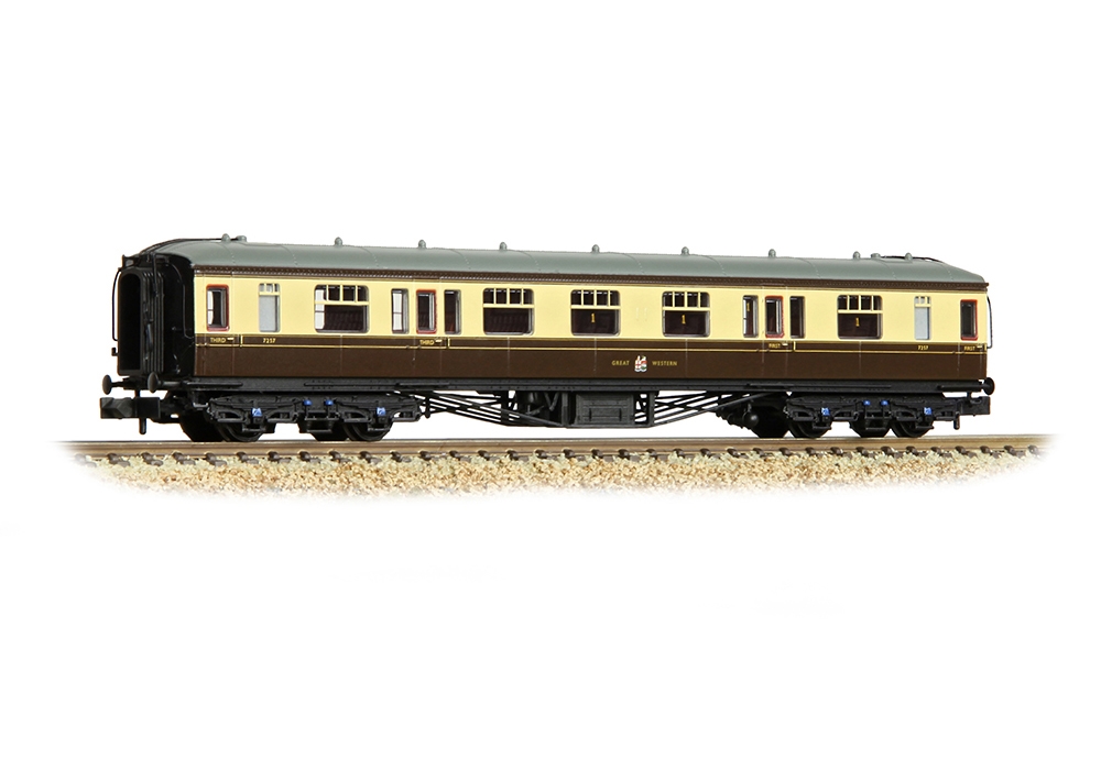 These N scale models of the GWR Hawksworth Coaches are one of the many jewels in the Graham Farish Rolling Stock fleet. Essential for any Western Region modeller, every coach is a faithful replica of the prototype and there are four vehicle types to choose from, allowing authentic trains to be created with ease. These include the Brake Third Corridor, Third Corridor and Composite Corridor, along with the Full Brake vehicle, whilst the Auto-Trailers designed by Hawksworth are also available in model form from Graham Farish.