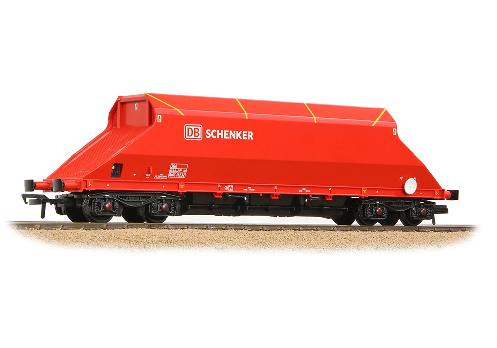 Reproduced in OO Scale by Bachmann Branchline, the JGA model features a precision moulded bodyshell which captures the wagon’s distinctive sloping ends with their ribbed constructed. Below the solebar, the three sets of discharge doors are added separately, meanwhile a metal weight is concealed above each bogie to ensure smooth running. The bogies themselves are fitted with metal wheels and axles whilst the integrated NEM coupling pockets allow alternative couplings to be fitted with ease. Separate brakes are added and the bogies each sport spring and suspension detailing in full relief. The bold red livery of DB Schenker faithfully adorns the model, complete with the various markings and operating instructions that are found on the real wagons.