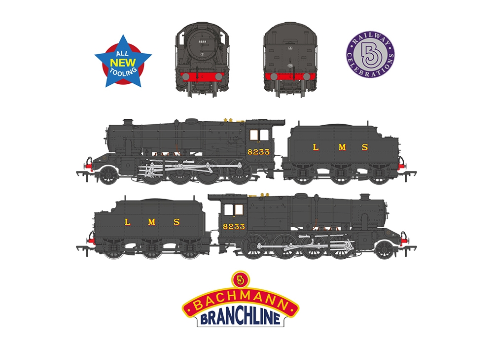 No. 8233 (BR No. 48773) is now preserved and in 1975 took part in the celebrations marking the 150th anniversary of the opening of the Stockton & Darlington Railway. The locomotive appeared in LMS Black livery and this is the condition chosen for the Branchline model which will be supplied in special Railway Celebrations packaging.