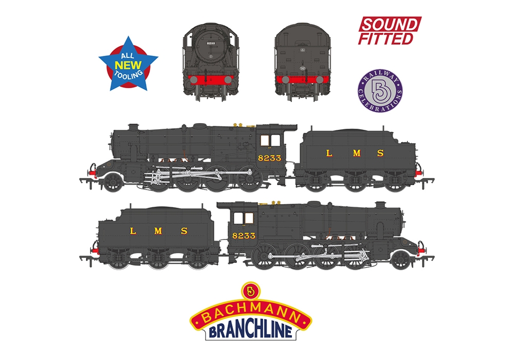 No. 8233 (BR No. 48773) is now preserved and in 1975 took part in the celebrations marking the 150th anniversary of the opening of the Stockton & Darlington Railway. The locomotive appeared in LMS Black livery and this is the condition chosen for the Branchline model which will be supplied in special Railway Celebrations packaging.