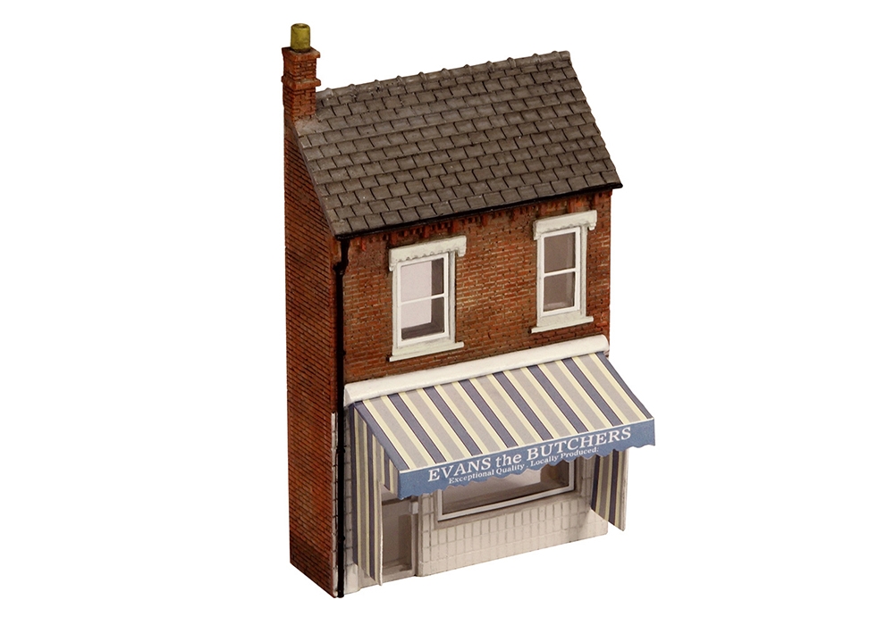 Unveiled as part of our Winter 2021 British Railway Announcements, this Low Relief Butchers Shop is named after our beloved late colleague Merl Evans and is the perfect solution for anyone wishing to provide their miniature townsfolk with this valuable amenity. Being produced in Low Relief, this model will take up minimal space and can be combined with other Low Relief buildings from Scenecraft to quickly and easily create a realistic street scene.