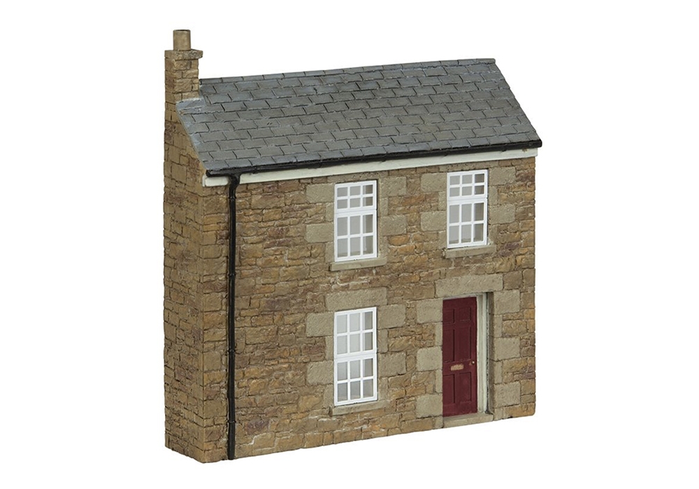 Terraced houses built from stone are common in many areas of the UK as buildings are often constructed from locally available materials, and these Low Relief models from Scenecraft make it easy to incorporate this familiar sight into minimal space, as a backdrop to any layout or diorama. This model is designed to work alongside the other Low Relief Stone Terraces in the Scenecraft range and has a door painted in red on the right-hand side of the building, with windows and a drainpipe on the left.