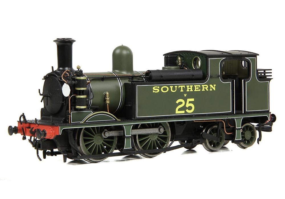 The LSWR Adams O2 makes a welcome return to the EFE Rail range, and this model sports a new tooling variant not previously seen on these LSWR 0-4-4Ts. The new tooling allows us to depict locomotives with open coal rails atop the coal bunker, an original feature of the Isle of Wight locomotives before they were rebuilt with larger bunkers. The model sports an impressive level of detail and is supplied with an accessory pack which includes bufferbeam pipework, route indicator discs and a set of etched metal loco tools. Smooth running is assured thanks to the powerful coreless motor, whilst the 6 pin DCC decoder socket is easily accessible inside the smokebox, thanks to the magnetic door providing simple access for those wishing to fit a DCC decoder. At the rear of the loco, wiring has been provided into the coal bunker for a speaker to be fitted below the removable coal load, for those wishing to add a speaker and sound decoder.