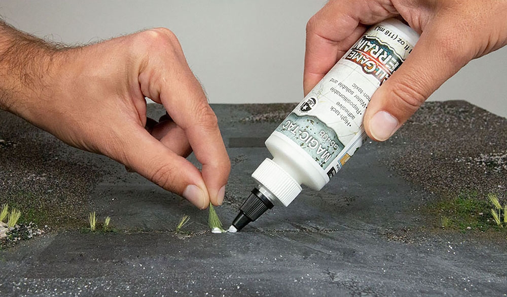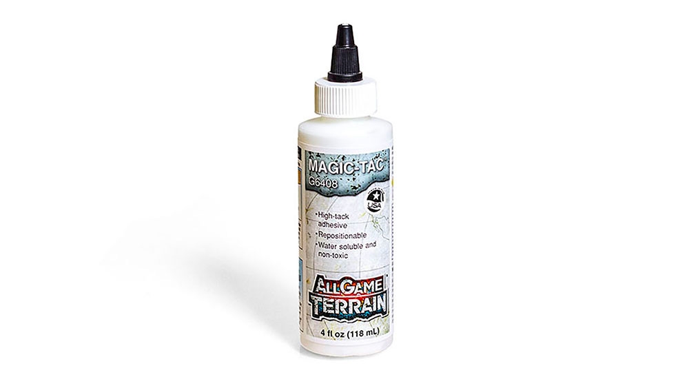 Magic Tac™ is a high-tac adhesive. It is thick and full bodied, yet flexible. It is great for Tall Grass, Static Grass, and making custom tufts for your terrain feature, miniature base or gaming mat. Magic Tac is water soluble and non-toxic.